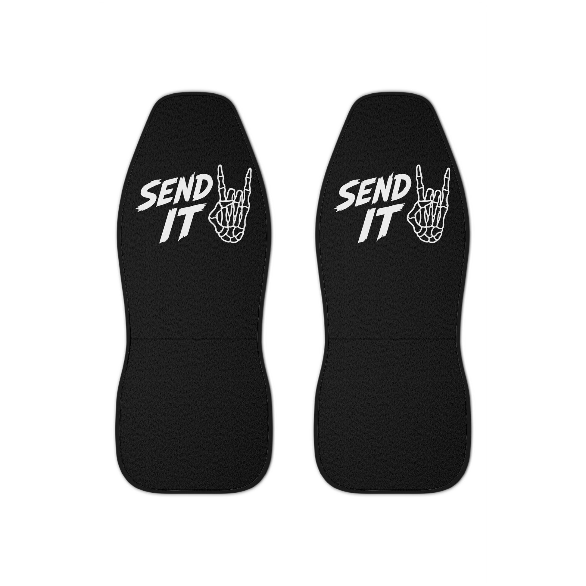 Add a custom spin on any car with these personalized seat covers. Made with top-tier, thick polyester fabric for long-lasting durability. These seat covers come with an elastic fastening system that delivers a secure, snug fit that is tool-free and easy to install. Both covers feature identical designs.